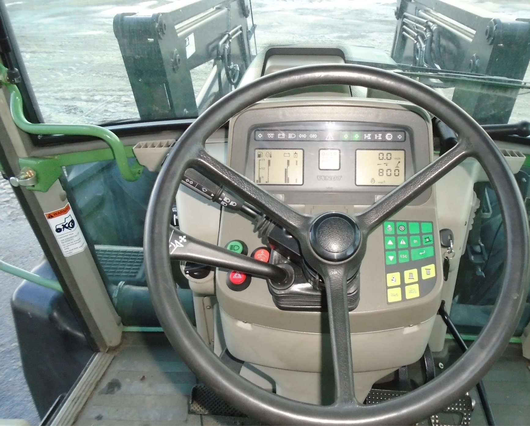 Fendt 716 Vario, cargador delantero, cabina plegable. Puede levantar hasta 6000 kg a una distancia de 24 "desde el punto de elevación