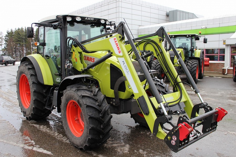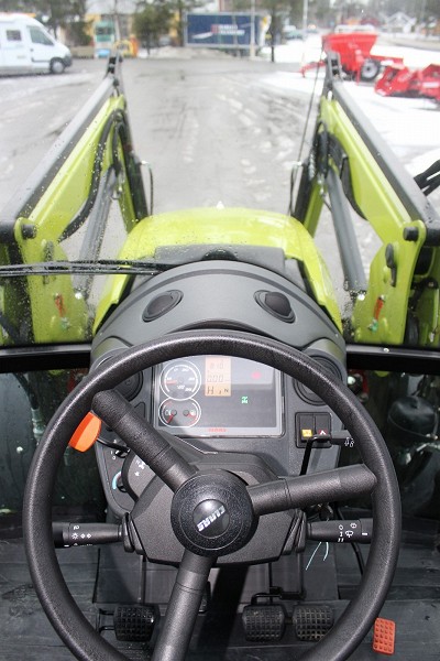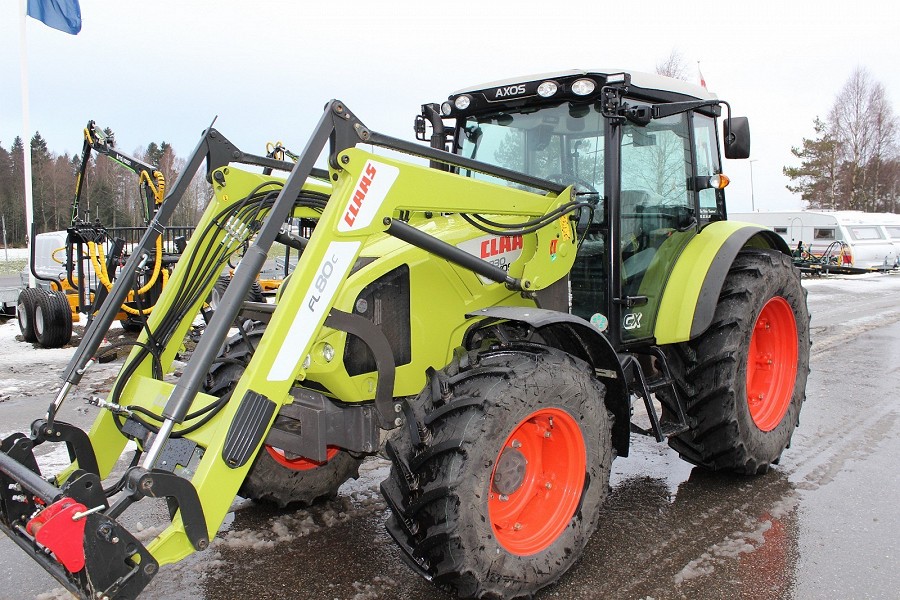 Cabina con aire acondicionado y calefacción, 4x4, Condición de menta, Claas Axos 330 CX con cargador delantero.Puede levantar hasta 5100 kg a una distancia de 24 "desde el punto de elevación.